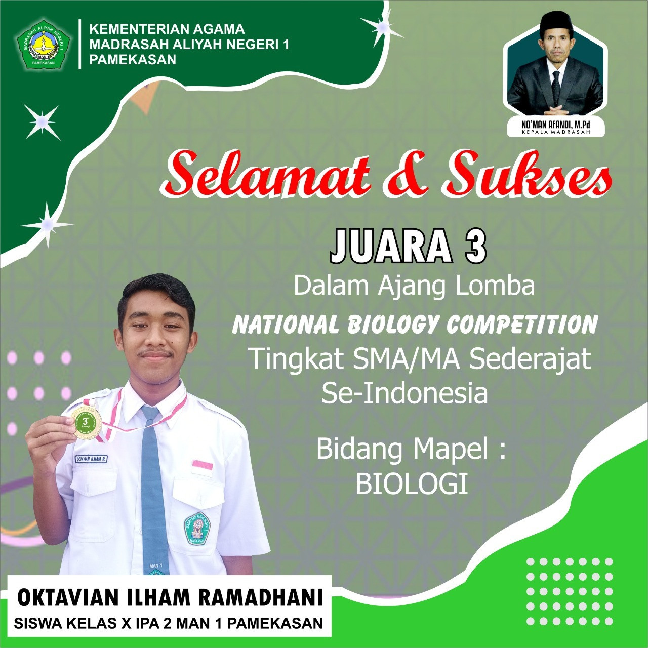 Selamat dan SuksesOktavian Ilham RamadhaniSiswa Kelas X IPA 2 MAN 1 PamekasanJuara 3 National B Baca Selengkapnya...