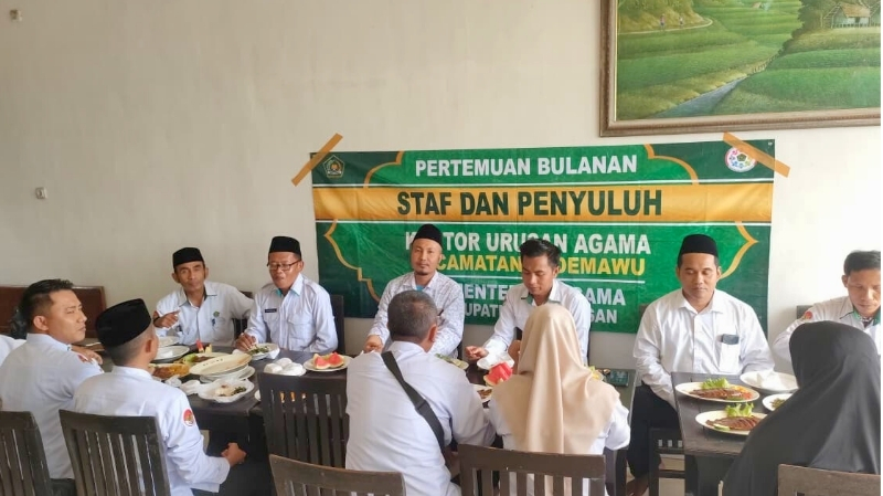 Pertemuan tersebut diikuti oleh seluruh jajaran KUA Pademawu, mulai dari penghulu, penyuluh agama Islam, hingga staf. Kegiatan yang telah berlangsung selama bertahun-tahun ini digelar secara bergantian, dengan setiap unsur mendapat giliran menjadi penanggung jawab sekaligus tuan rumah.