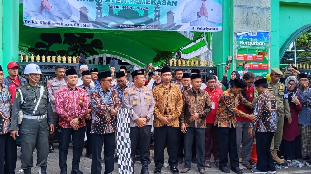 Pamekasan, 29 Mei 2025 – Suasana khidmat menyelimuti pemberangkatan jemaah haji asal Kabupaten Pamekasan. Bupati Pamekasan, KH. Khalilurrahman, didampingi Kepala Kantor Kementerian Agama Kabupaten Pamekasan beserta jajaran, Forkopimda secara resmi melepas keberangkatan para tamu Allah di Masjid Agung Asy-Syuhada Kabupaten Pamekasan.