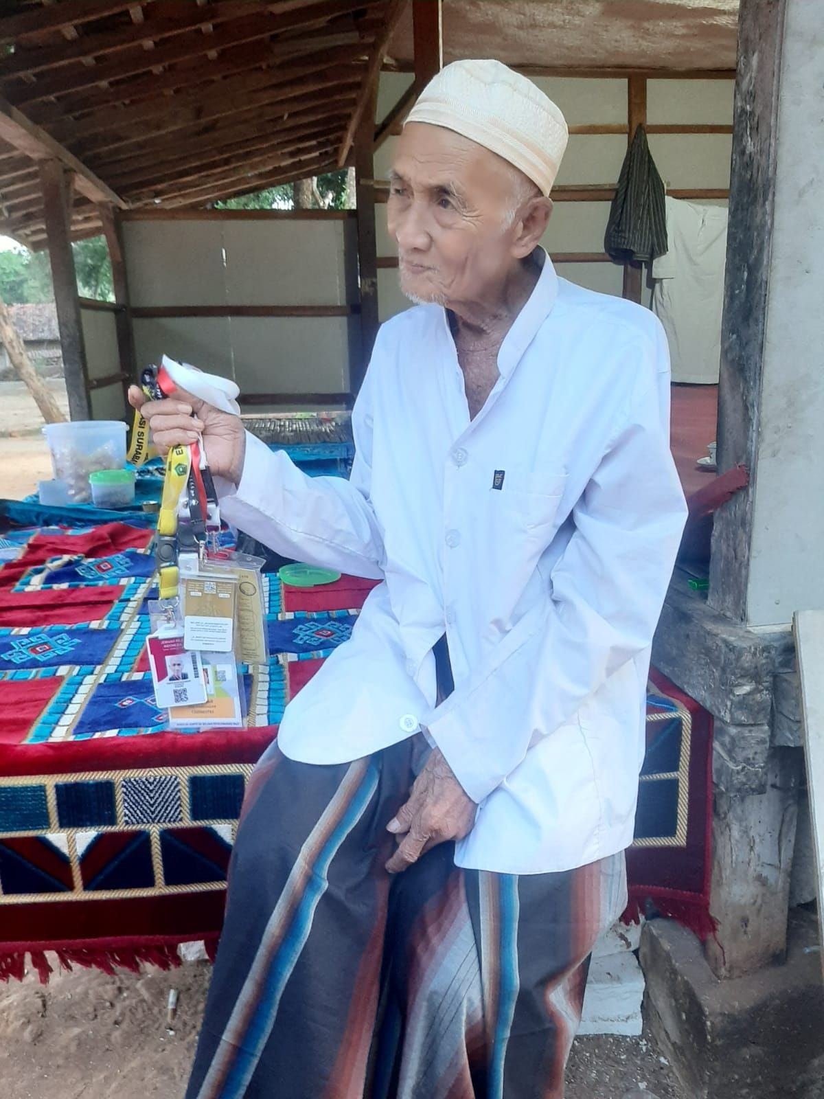 Didampingi oleh Bapak Kepala Kantor Kementerian Agama Kabupaten Pamekasan, Mawardi dan Kepala Seksi Penyelenggaraan Haji dan Umrah, Abdul Halim, Humas Kemenag RI mengunjungi H. Ahmad untuk bersilaturahmi. H. Ahmad menyambut hangat kedatangan tamu istimewa ini.