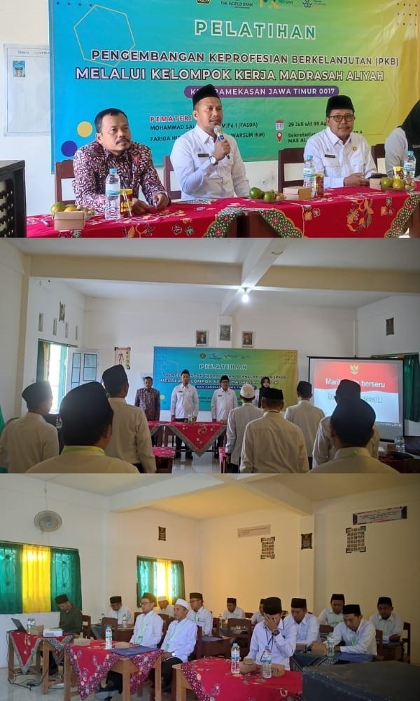 Pelatihan Pengembangan Keprofesian Berkelanjutan (PKB) bagi Kelompok Kerja Madrasah Aliyah digelar di aula MA Al-Mujtama' Palengaan Pamekasan. Acara ini dihadiri oleh Kepala Kantor Kementerian Agama (Kemenag) Pamekasan, Mawardi, serta Kepala Seksi Pendidikan Madrasah, Badrus Shomad. Pelatihan ini diikuti oleh sejumlah guru dari berbagai Madrasah Aliyah di Pamekasan.