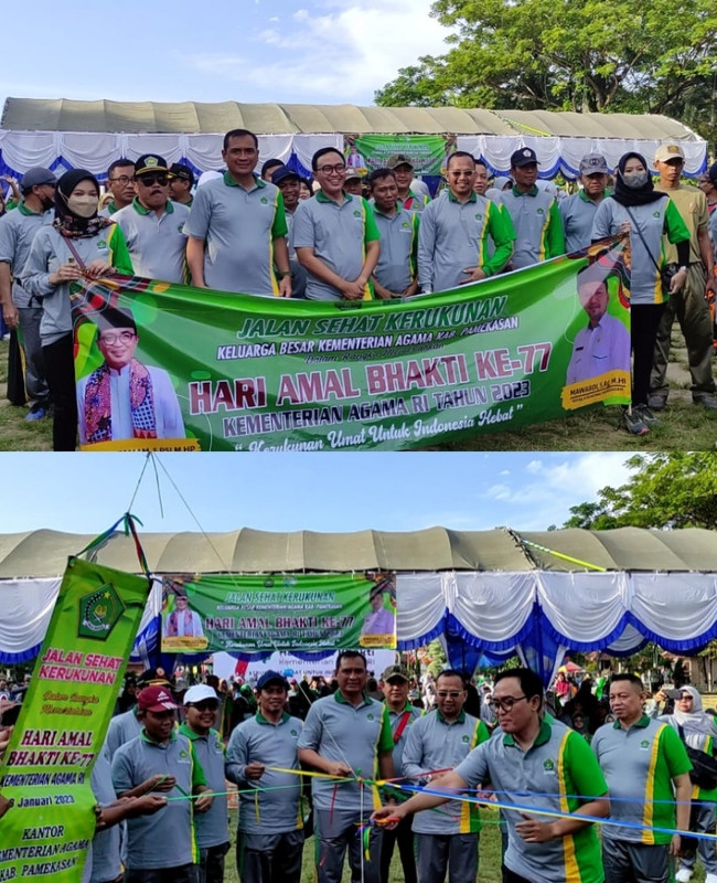 Masih Bagian dari rangkaian peringatan Hari Amal Bhakti (HAB) Kemenag RI ke - 77, Kemenag Pamekasan adakan Jalan-Jalan Sehat (JJS) bersama Bupati Pamekasan, H. Badut Tamam, S.Psi., M.HP. dan jajaran Forkopimda, Minggu (8/1/2023).
